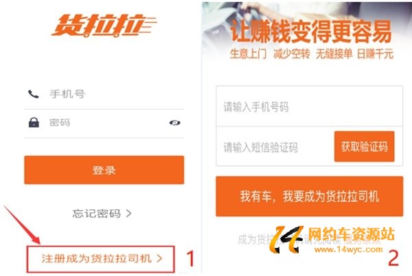 3、在注册界面需要填写手机号,接受验证码后点击“我有车,我要成为货拉拉司机”完成注册。