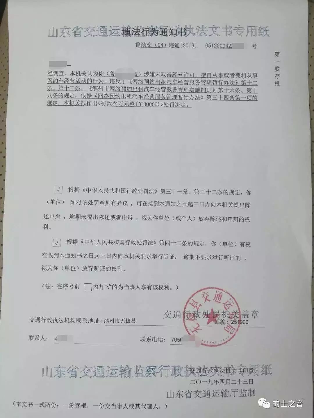 据无棣县交通运输局通报,交通局正在结合群众举报、暗访调查等多种方式对从事非法网约车、“黑出租”的人员下达《违法行为通知书》。