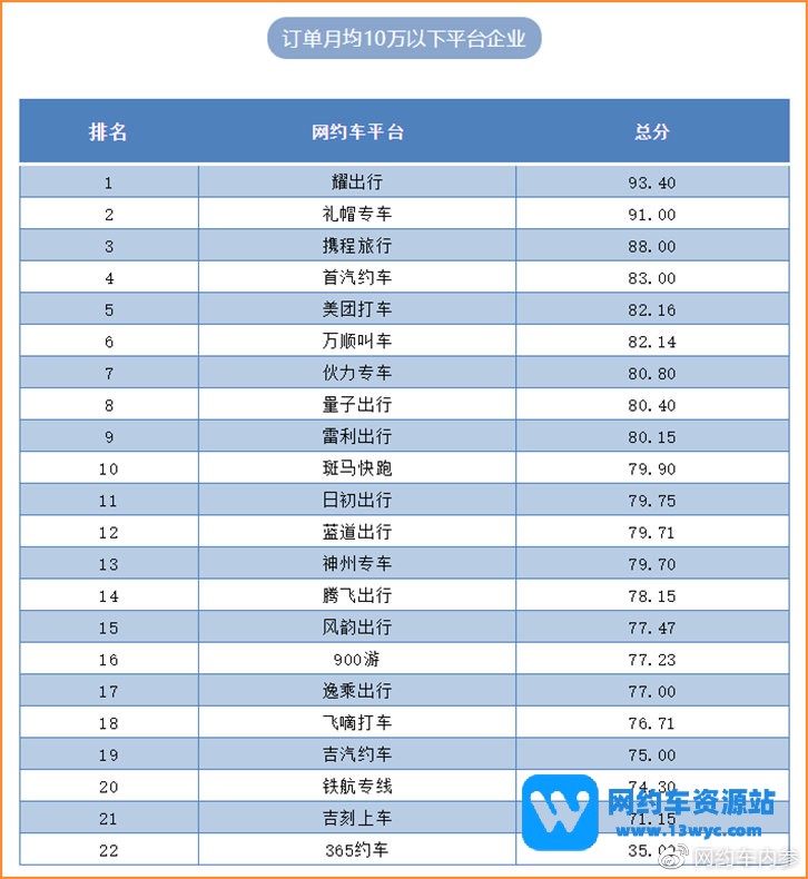 杭州对在当地实际运营的43家网约车平台企业,按照订单月均10万以上平台企业和订单月均10万以下平台企业两个指标分开进行了排名。
