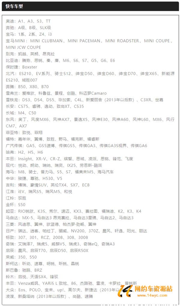 (3)车辆排量过低:滴滴要求车辆的排量达到1.8以上才可以注册,因此很多车型被滴滴清除出了城市车型中。由于每个城市车型要求都不一样,越是大城市要求越高;