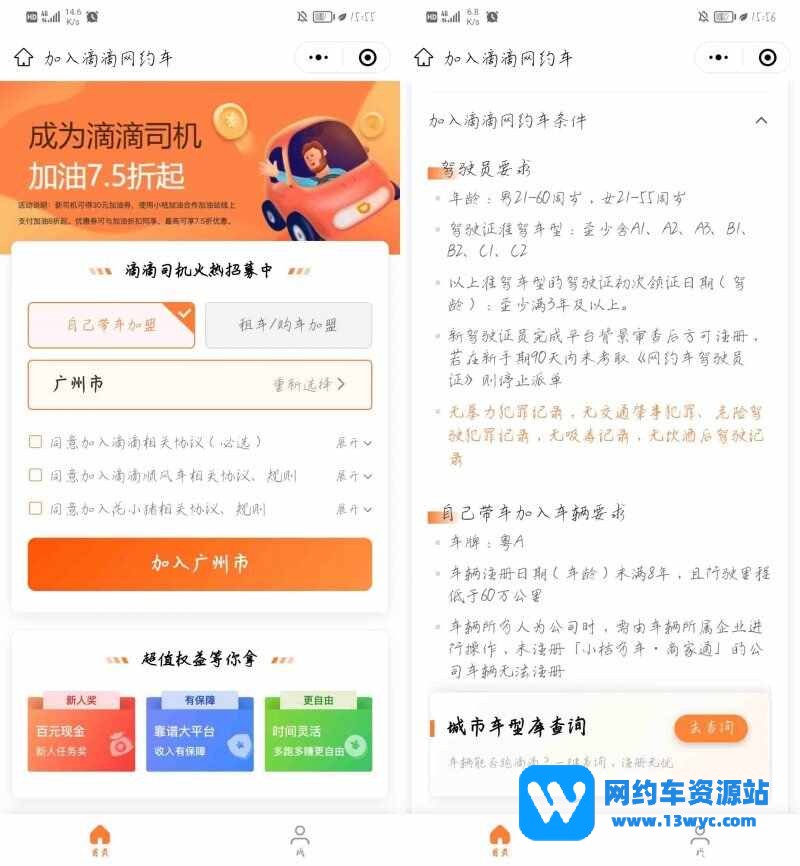 滴滴注册条件(具体看注册页面的“加入滴滴网约车条件”,城市不同网约车加入的条件也有差异):